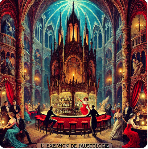 ChatGPT : - "Voici une illustration représentant "Le Château de Méphistophélès" sous la forme d’un cabaret dans la ville de Hambourg. L’image intègre un bar vibrant avec des figures féminines en interaction avec les clients, reflétant une ambiance de tentation et de décadence, tout en conservant une esthétique gothique et mystique. J’espère qu’elle correspond à votre vision ! "