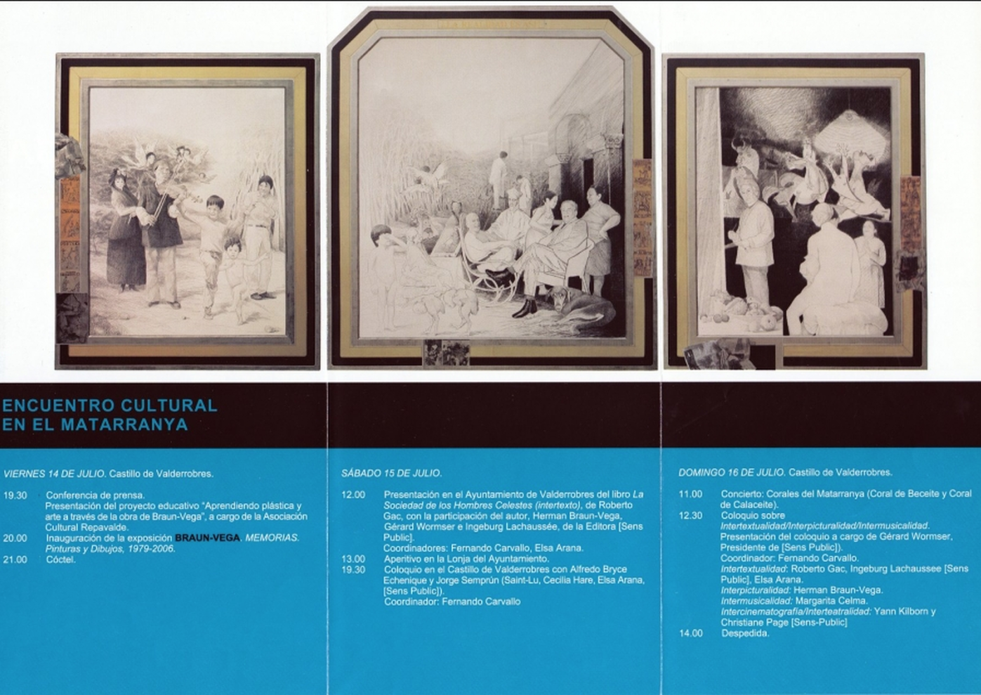 En 2004, invité à participer à la rencontre annuelle des Belles Latinas à Lyon, je programmai un "intertexte collectif" autour de la légende de Faust avec les élèves du prestigieux lycée Édouard Herriot. Gérard Wormser, docteur en philosophie et professeur à l'École Normale Supérieure de Lyon, fondateur de l'association Sens Public (revue électronique plurilingue et maison d'édition créées à Lyon en 2003), m'aida à guider les élèves dans l'écriture électronique de cet Intertexte collectif expérimental. Toutefois, ce ne fut que l'année suivante, dans le Manifeste pour une nouvelle littérature? présenté dans le stand de Sens Public au Salon du Livre (Paris 2005), parallèlement à l’édition SP de La Société des Hommes Célestes, qu'il a été question d'une formalisation conceptuelle de l'Intertexte en tant que genre post-romanesque. La Société des Hommes Célestes (Un Faust latino-américain) est un ouvrage tissé avec des centaines de citations de Faust classiques, publié sous la rubrique "Intertexte". La langue de base est le français, mais par le biais des citations des textes faustiens originaux, le texte s'ouvre constamment au plurilinguisme. Le livre fut édité sur papier et imprimé en Espagne sous la supervision de Chantal Waszilewska et d’Émilie Tardivel, alors secrétaire de Sens Public. La beauté de la couverture et la configuration du livre, conçues par le peintre péruvien Herman Braun-Vega, retinrent l’attention du Salon du Livre et il fut placé dans la salle réservée aux plus beaux ouvrages. Simultanément, grâce aux nouvelles technologies, le texte commença à émerger dans une "version électronique" où les citations devinrent "actives". Le lecteur n'est plus obligé d’aller les chercher en bas de page ou à la fin du livre, mais il peut accéder immédiatement, pendant sa lecture sur support numérique, aussi bien au texte original de la citation qu'à son hypertexte (ouvrage, langue et édition d'origine). La version électronique, à la charge de Chantal Waszilewska, n'a été complètement achevée que pour Le Château de Méphistophélès ou L'Examen de Faustologie, farce qui clôt l'œuvre. "Clore" n'est pas le verbe à utiliser dans le cas de La Société des Hommes Célestes car, en tant qu'Intertexte, le livre a pour vocation d'être toujours ouvert au lecteur-écrivain. Celui-ci peut, en s'appuyant sur les facilités offertes par le support numérique et par l'ajout de nouvelles citations faustiennes, participer à l’évolution d'une œuvre qui s'inscrit dans la longue tradition faustienne, initiée en 1583 par le Volksbuch von Doktor Johannes Faustus, première transcription littéraire de la légende du Docteur Faust, légende à la fois périodiquement enrichie et perpétuellement inachevée. La version en espagnol du livre -La Sociedad de los Hombres Celestes (Un Fausto Latinoamericano)- n’existe pour le moment que sur papier. Il ne s’agit pas d’une simple traduction du texte français, mais d'une "traduction intertextuelle", laquelle implique des modifications parfois très significatives du texte original. Toutefois, l’axe du livre, dans ses deux versions, est le même : une fresque de l’éducation occidentale au XXe siècle, depuis le kindergarten jusqu’au doctorat… en faustologie, bien sûr. En mars 2006, la présentation de La Société des Hommes Célestes eut lieu à la Maison de l'Amérique Latine à Paris, puis dans les salons de l'ambassade du Chili en France (mai 2006, Hernán Sandoval, ambassadeur; Raúl Fernández, responsable culturel), avec la participation de Hermán Braun-Vega, du journaliste de Radio France Internationale, Fernando Carvallo, de Gérard Wormser et de Sophie Rabau, professeure de littérature comparée qui m'avait préalablement invité à donner une conférence à la Sorbonne Nouvelle sur La Guérison et écrit un article sur le sujet, publié par l'Université Stendhal de Grenoble. Dans le public invité à l'ambassade se trouvaient aussi Julia Peslier, docteure en littérature, spécialiste de faustologie (Université Paris VIII, Vincennes Saint-Denis), et Alejandro Canseco-Jerez, professeur de littérature latino-américaine à l'université Paul Verlaine de Metz et à l'École des Hautes Études en Sciences Sociales de Paris. Deux mois plus tard le livre fut présenté en Espagne (château de Valderrobres, Aragón, juillet 2006), conjointement à la rétrospective de Herman Braun-Vega, que je définis dans l'un de mes essais comme "maître de l’interpicturalité", terme -l'interpicturalité- dérivé de celui de l'intertextualité littéraire. En effet, ce que je tentais au niveau de la littérature, d'autres artistes le tentaient aussi dans leurs propres disciplines. Ainsi, Braun-Vega "cite" souvent dans ses tableaux les grands classiques de la peinture : Velázquez, Rembrandt, Rubens, Ingres, Goya, Gauguin, Cézanne, Picasso, etc. Des œuvres comme Double éclairage sur Occident avec des emprunts à Velázquez et à Picasso, La leçon à la campagne où Rembrandt est cité, ou bien le triptyque ¿La realidad es así?, conçu autour de Goya et Picasso, montrent que d'autres artistes d'avant-garde cherchent à renouer avec le courant central du classicisme et à sortir des formes stéréotypées et dévitalisées de l'art et de la littérature de notre époque.